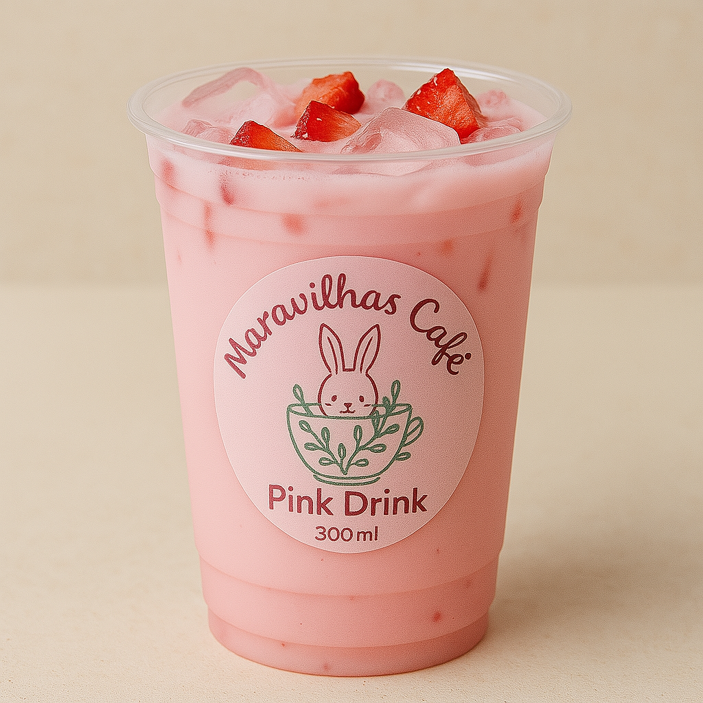 Uma bebida leve, refrescante e cheia de charme. Nosso Pink Drink é feito com: Leite de coco gelado Extrato natural de morango Chá de hibisco leve Pedaços frescos de morango Gelo triturado para uma textura suave e cremosa